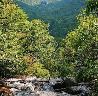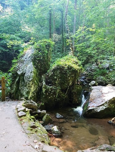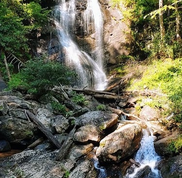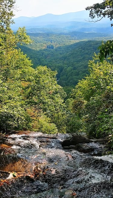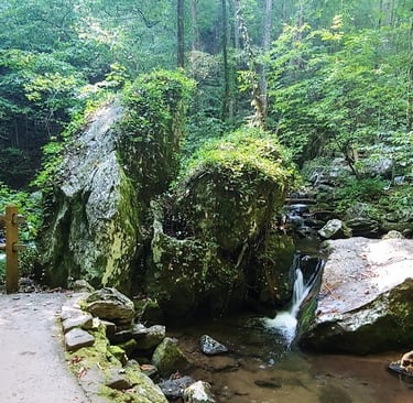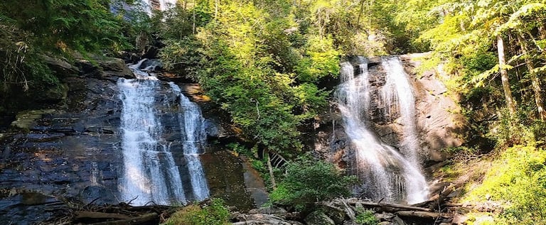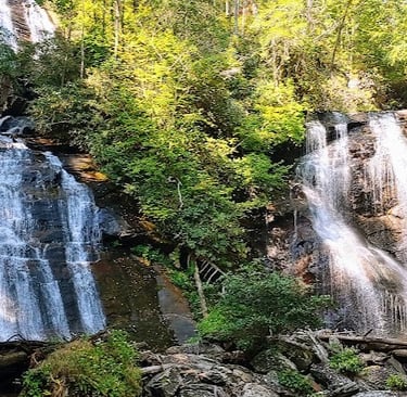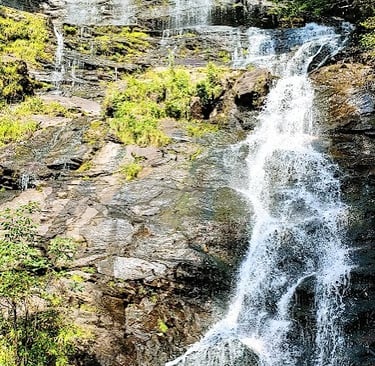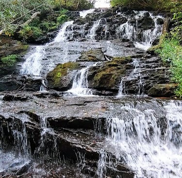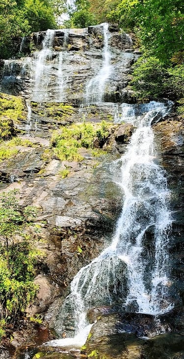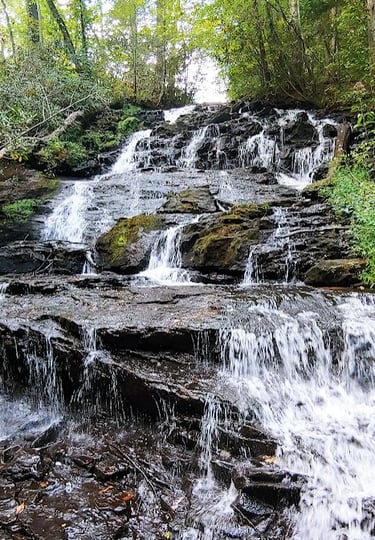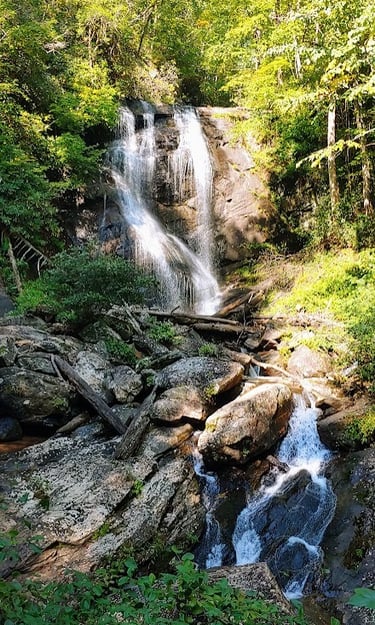 Bald River is a large tributary and falls over the cliffs as one waterfall at the top and then splits into 2 streams, cascading over the rock formations before flowing down into the Tellico River. It's just gorgeous.