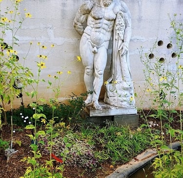 The grounds are amazing, especially the statues standing amongst the greenery & flowers. It reminds me of ancient Rome with their statues and water features. Oh, and we can't forget the lawn games: archery, hatchet throwing, and super-sized chess game. We spent a good 2 hours walking all over, and finding little gems of beauty & cuteness - and I have to say I had a hard time choosing which photos to show.