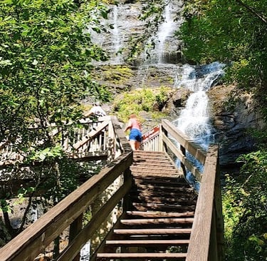 Hwy 138, hike Dukes Creek Falls trail and Raven Cliffs Trail which follows Dodd Creek in Helen.